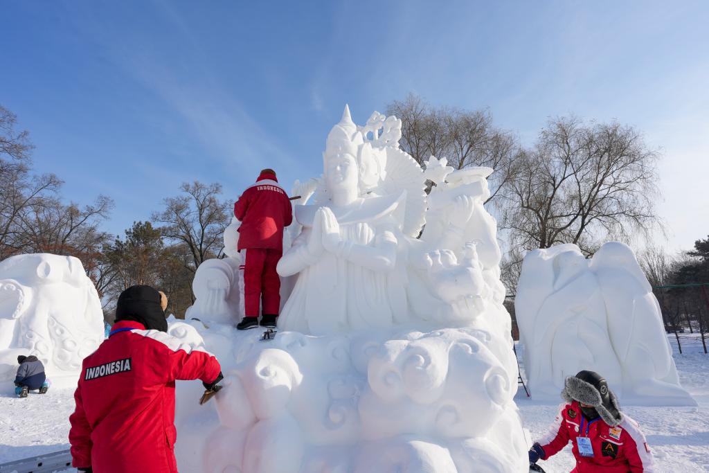 HARBIN, 10 enero, 2026 (Xinhua) -- Imagen del 9 de enero de 2026 de concursantes de Indonesia creando su escultura de nieve en la sede de la Exposición de Nieve de la Isla del Sol, en Harbin, en la provincia de Heilongjiang, en el noreste de China. Un concurso de esculturas de nieve de cuatro días de duración concluyó aquí el viernes, con la participación de 25 equipos de 13 países. (Xinhua/Wang Song)
