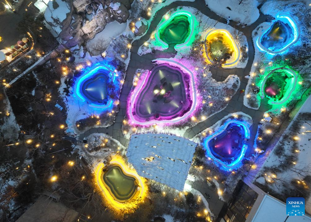 SHENYANG, 10 enero, 2026 (Xinhua) -- Vista aérea tomada con un dron el 9 de enero de 2026 de visitantes disfrutando de las aguas termales al aire libre rodeadas de hielo y nieve en un complejo de aguas termales, en Shenyang, en la provincia de Liaoning, en el noreste de China. Aprovechando sus recursos naturales únicos, Shenyang ofrece experiencias de turismo invernal especiales al combinar actividades de hielo y nieve con aguas termales, atrayendo a visitantes de todo el país. (Xinhua/Pan Yulong)