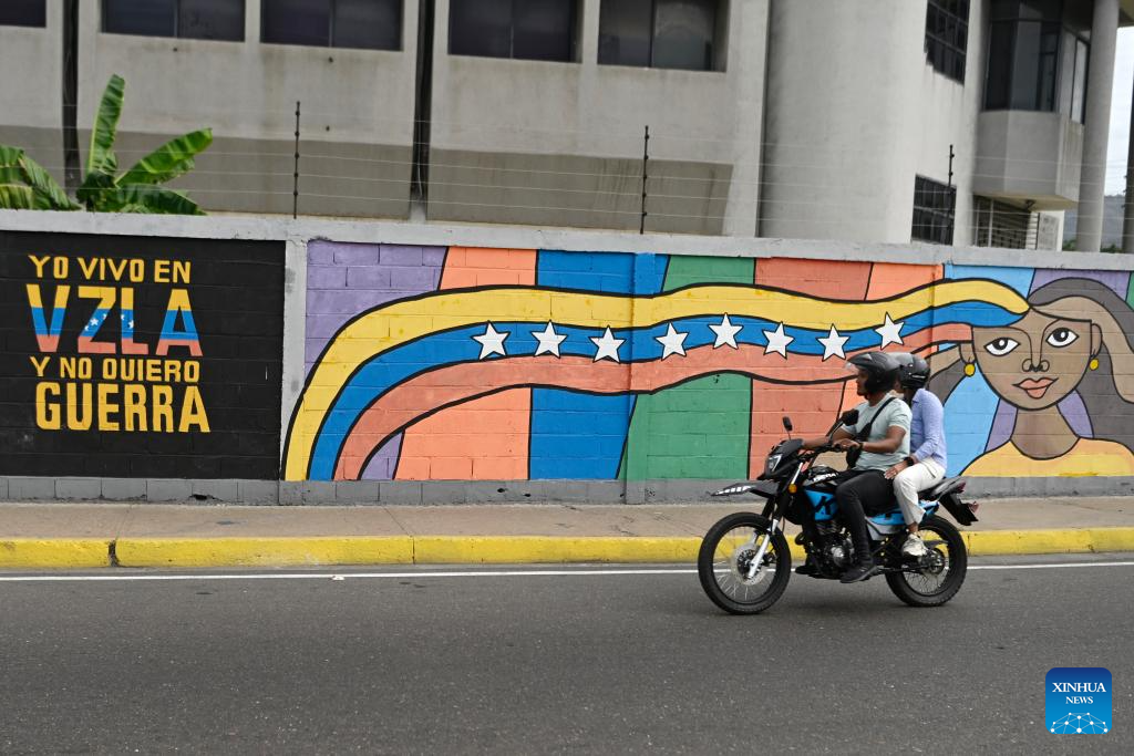ANZOATEGUI, 11 enero, 2026 (Xinhua) -- Personas caminan frente a un mural, en el estado Anzoátegui, Venezuela, el 11 de enero de 2026. (Xinhua/Lucio Tavora)