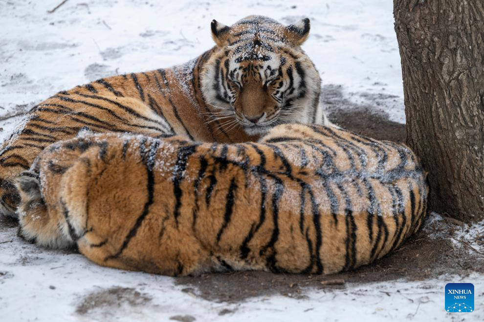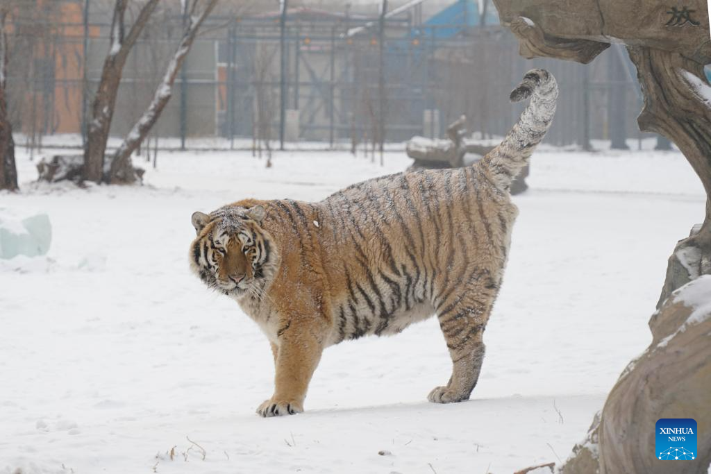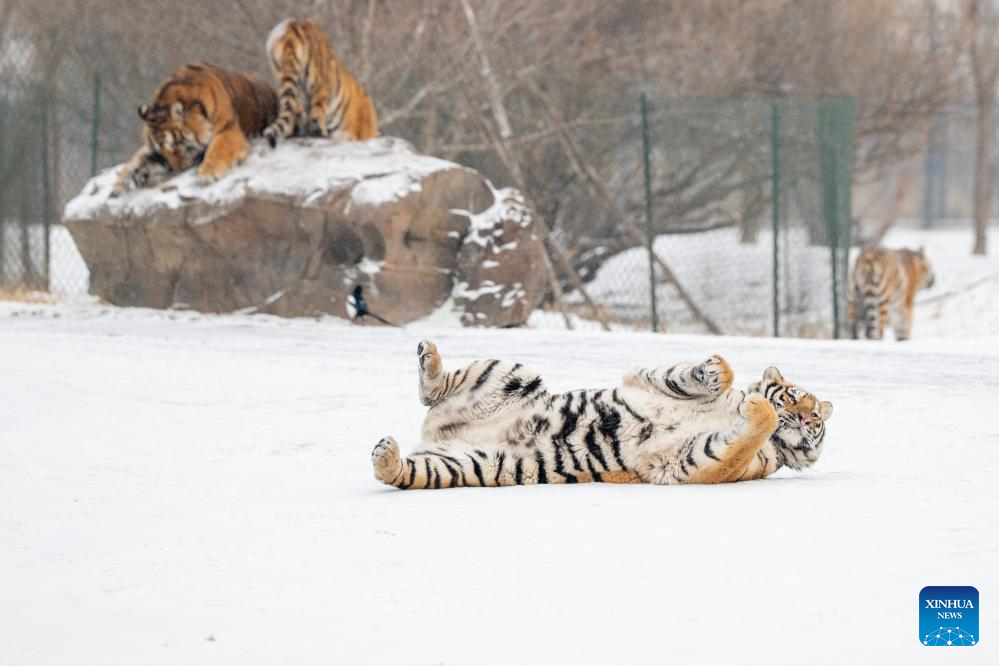 HARBIN, 12 enero, 2026 (Xinhua) -- Imagen del 12 de enero de 2026 de tigres en el Parque del Tigre Siberiano cubierto de nieve, en Harbin, en la provincia de Heilongjiang, en el noreste de China. Harbin ha recibido recientemente nevadas, lo que ha añadido un toque de encanto invernal a su Parque del Tigre Siberiano. (Xinhua/Wang Zuo)