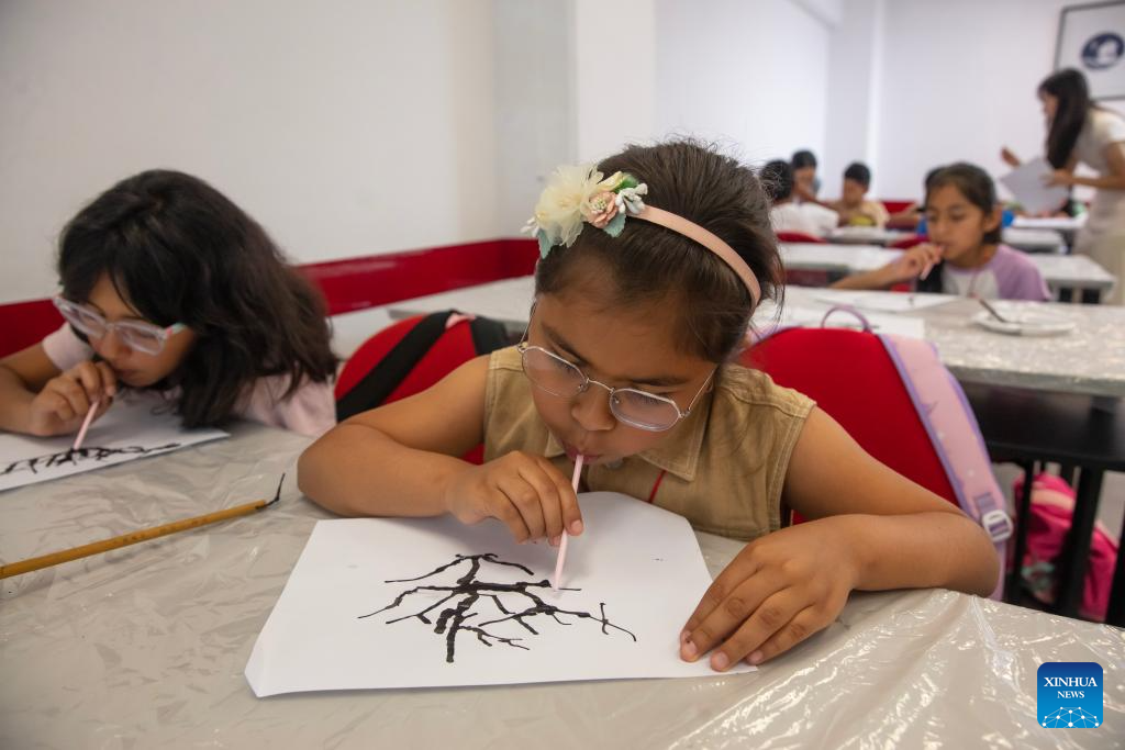 Imagen del 13 de enero de 2026 de estudiantes pintando durante los denominados "Talleres de verano 2026" organizados por el Instituto Confucio (IC) de la Pontificia Universidad Católica del Perú (PUCP), en Lima, Perú. Niños peruanos participan muy emocionados durante este verano en los talleres organizados por el IC de la PUCP para lograr y consolidar su acercamiento a la cultura china mediante actividades educativas y recreativas. (Xinhua/Mariana Bazo)