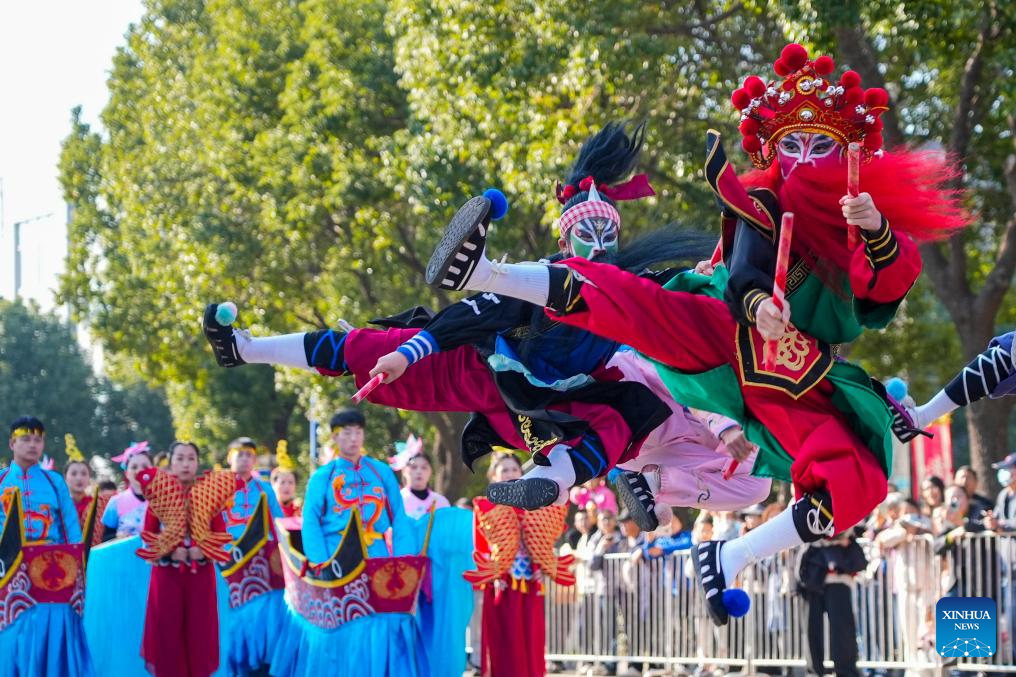 BEIJING, 14 enero, 2026 (Xinhua) -- Imagen del 20 de diciembre de 2025 de artistas folclóricos presentando la danza Yingge durante un desfile cultural, en el poblado de Xiepu, en la ciudad de Ningbo de la provincia de Zhejiang, en el este de China. China entra en su estación más fría en el undécimo mes del calendario lunar chino. La urbanización y la agricultura moderna han debilitado el impacto de los términos solares en la vida cotidiana, pero los hábitos culturales y alimenticios se han transmitido de generación en generación. (Xinhua/Zheng Kaixia)