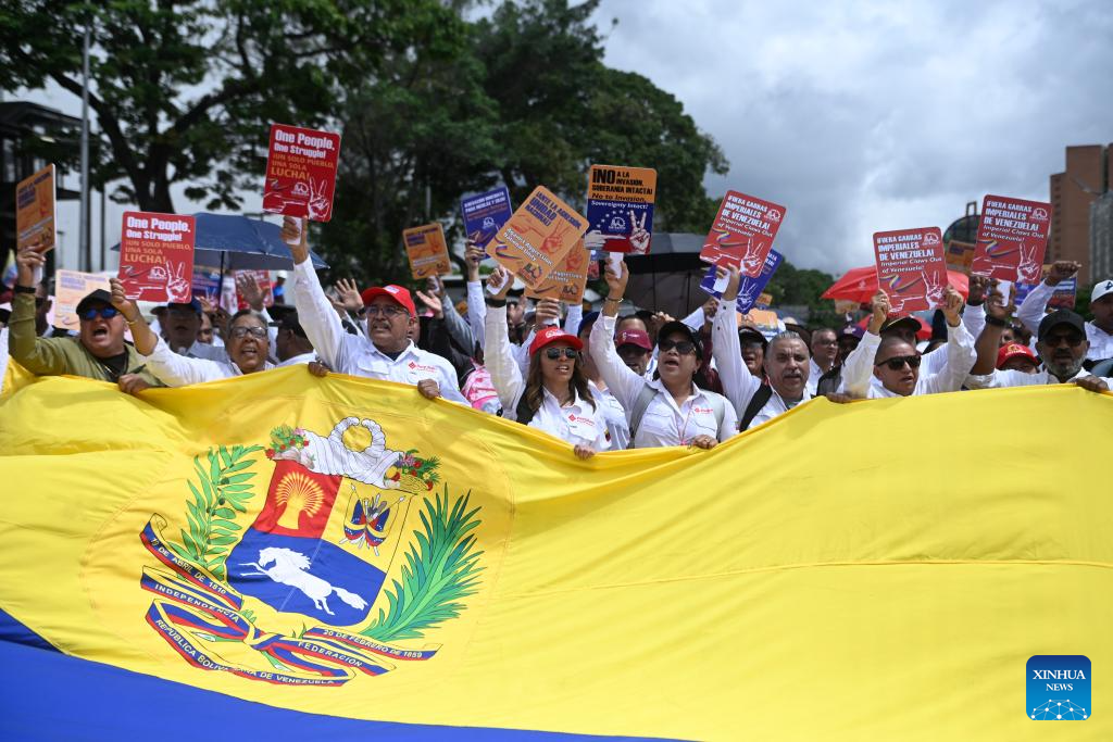 CARACAS, 14 ene (Xinhua) -- Trabajadores venezolanos marcharon hoy miércoles por las calles de Caracas para exigir la libertad del presidente Nicolás Maduro y su esposa, Cilia Flores, capturados el pasado 3 de enero por las fuerzas militares de Estados Unidos.