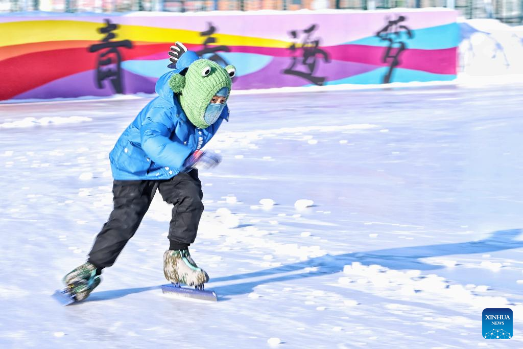 BEIJING, 15 enero, 2026 (Xinhua) -- Imagen del 12 de enero de 2026 de un estudiante practicando patinaje de velocidad, en la ciudad de Tongjiang, en la provincia de Heilongjiang, en el noreste de China. (Xinhua/Liu Wanping)