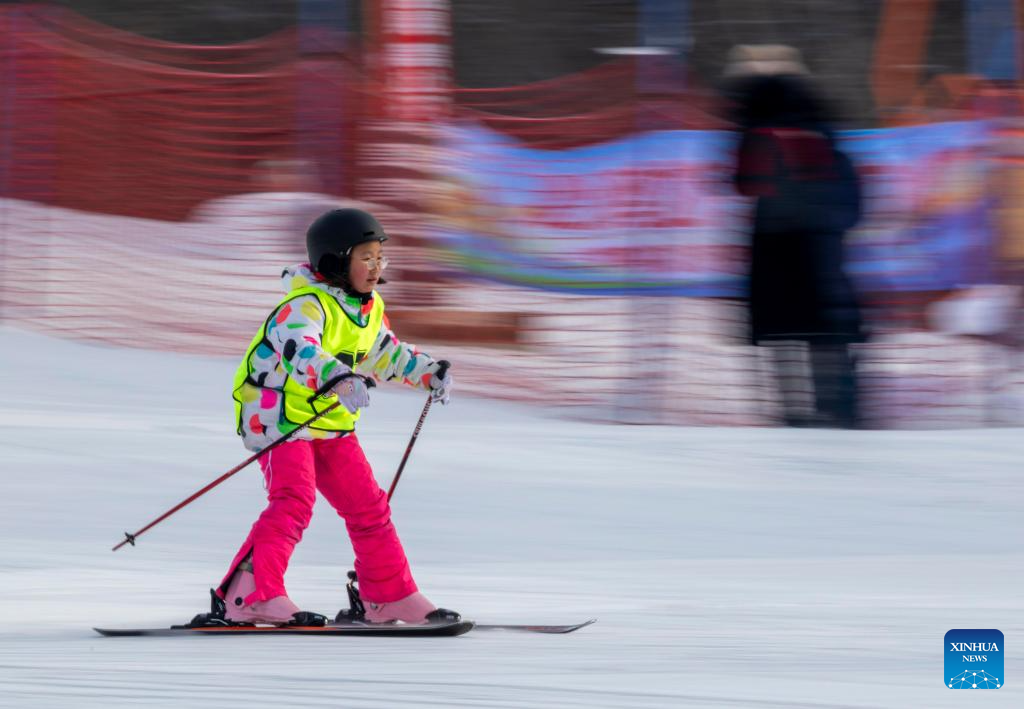 BEIJING, 15 enero, 2026 (Xinhua) -- Imagen del 13 de enero de 2026 de una estudiante compitiendo en un evento de esquí de escuela primaria, en Shuangyashan, en la provincia de Heilongjiang, en el noreste de China. (Xinhua/Han Yang)