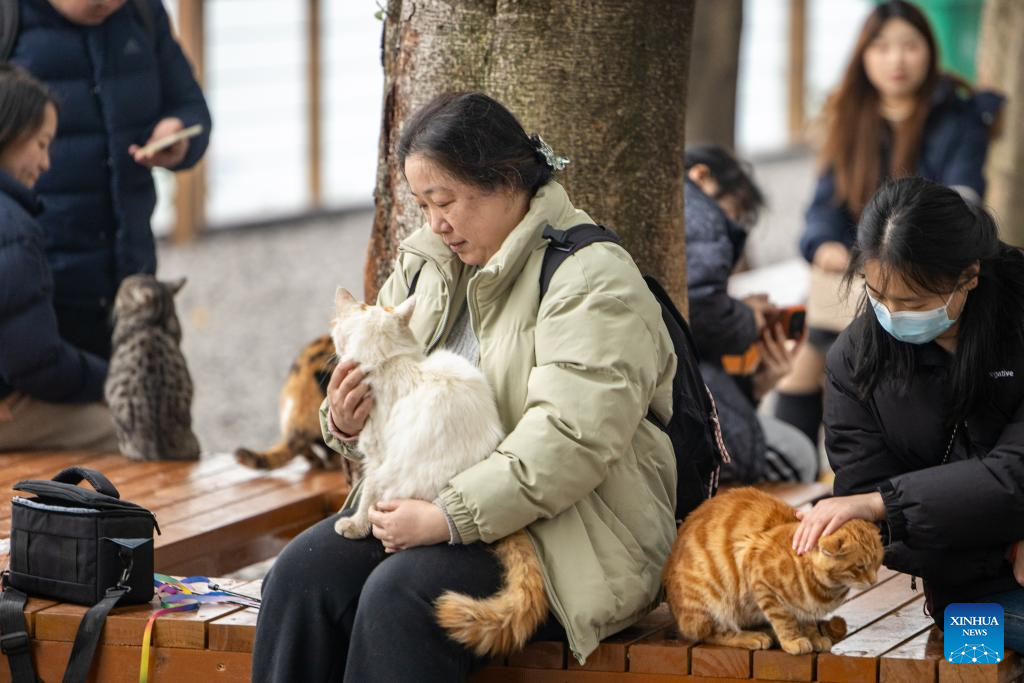 CHONGQING, 15 enero, 2026 (Xinhua) -- Imagen del 14 de enero de 2026 de visitantes interactuando con gatos en un parque temático de gatos, en el distrito de Nan'an, en Chongqing, en el suroeste de China. Desde 2025, un terreno baldío a lo largo del río Yangtsé, en el distrito de Nan'an de Chongqing, se ha transformado en un parque temático de gatos. Con una superficie de 30.000 metros cuadrados, el parque sirve como refugio para gatos callejeros abandonados o heridos. (Xinhua/Huang Wei)