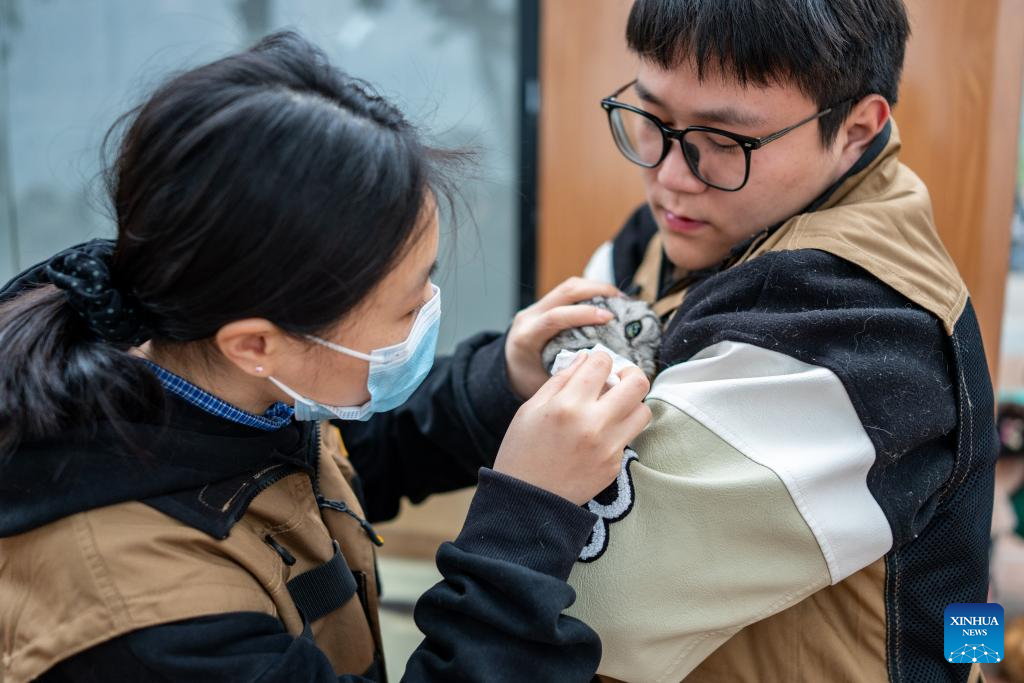 CHONGQING, 15 enero, 2026 (Xinhua) -- Imagen del 14 de enero de 2026 de cuidadores ayudando a un gato con problemas oculares, en el distrito de Nan'an, en Chongqing, en el suroeste de China. Desde 2025, un terreno baldío a lo largo del río Yangtsé, en el distrito de Nan'an de Chongqing, se ha transformado en un parque temático de gatos. Con una superficie de 30.000 metros cuadrados, el parque sirve como refugio para gatos callejeros abandonados o heridos. (Xinhua/Huang Wei)