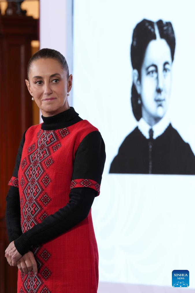 CIUDAD DE MEXICO, 15 enero, 2026 (Xinhua) -- Imagen proveída por la Presidencia de México de la presidenta mexicana, Claudia Sheinbaum, sonriendo durante su conferencia de prensa matutina, en Palacio Nacional, en la Ciudad de México, capital de México, el 15 de enero de 2026. La prioridad mexicana en la renegociación del Tratado entre México, Estados Unidos y Canadá (T-MEC) de libre comercio que se efectuará a mediados de año es garantizar su continuidad y su fortalecimiento debido a la relevancia que tiene para el desarrollo económico de la región, afirmó el jueves el secretario de Economía mexicano, Marcelo Ebrard. (Xinhua/Presidencia de México)