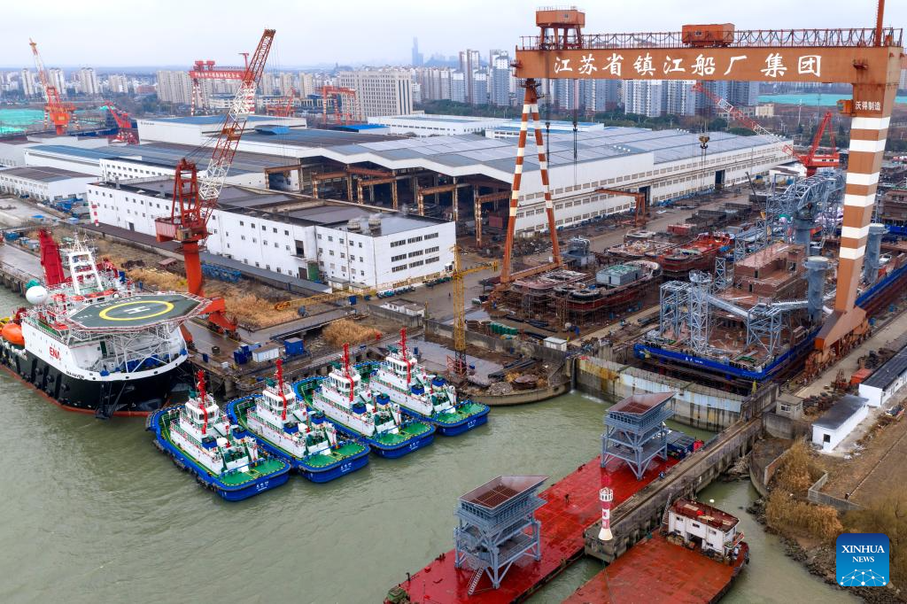 BEIJING, 19 enero, 2026 (Xinhua) -- Imagen tomada con un dron el 19 de enero de 2026 de trabajadores operando en un astillero, en Zhenjiang, en la provincia de Jiangsu, en el este de China. El producto interno bruto (PIB) de China creció un 5 por ciento interanual en 2025, cumpliendo con el objetivo anual de alrededor del 5 por ciento, según datos oficiales publicados el lunes. El PIB de China alcanzó un récord de 140,1879 billones de yuanes (unos 20,01 billones de dólares) el año pasado, resaltó el Buró Nacional de Estadísticas. (Xinhua/Xin Yi)
