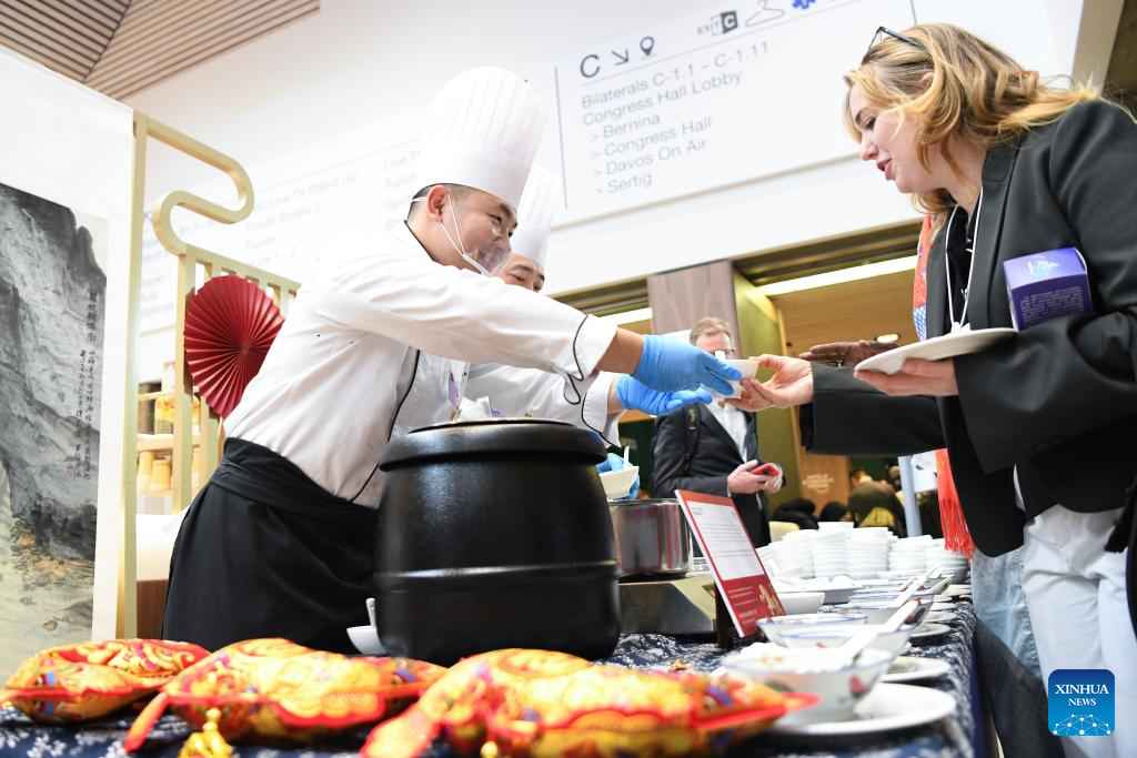 DAVOS, 21 enero, 2026 (Xinhua) -- Imagen del 20 de enero de 2026 de participantes degustando cocina china durante la recepción "Noche de Dalian" en la Reunión Anual del Foro Económico Mundial (FEM) 2026, en Davos, Suiza. La ciudad costera de Dalian, en el noreste de China, celebró aquí una recepción el martes por la noche, con presentaciones musicales y cocina gourmet local. Dalian acogerá en junio la Reunión Anual de los Nuevos Campeones 2026 del FEM, también conocida como Davos de Verano. (Xinhua/Lian Yi)