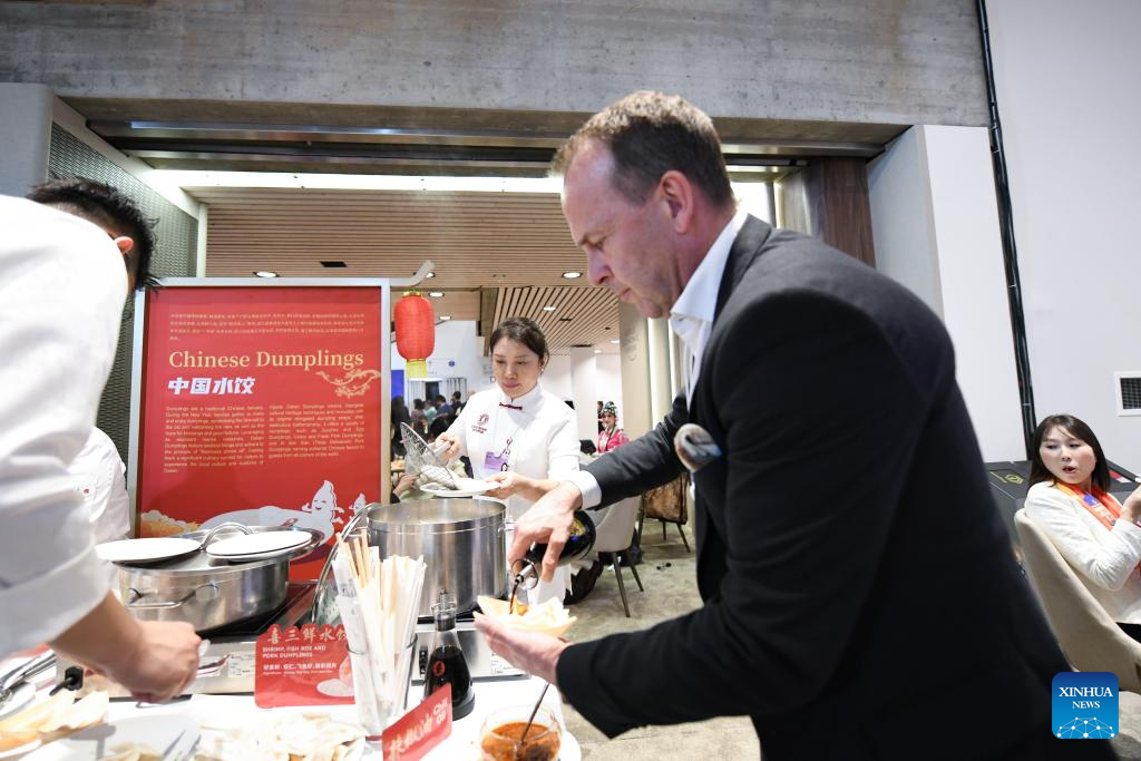 DAVOS, 21 enero, 2026 (Xinhua) -- Imagen del 20 de enero de 2026 de un participante degustando dumplings chinos durante la recepción "Noche de Dalian" en la Reunión Anual del Foro Económico Mundial (FEM) 2026, en Davos, Suiza. La ciudad costera de Dalian, en el noreste de China, celebró aquí una recepción el martes por la noche, con presentaciones musicales y cocina gourmet local. Dalian acogerá en junio la Reunión Anual de los Nuevos Campeones 2026 del FEM, también conocida como Davos de Verano. (Xinhua/Lian Yi)