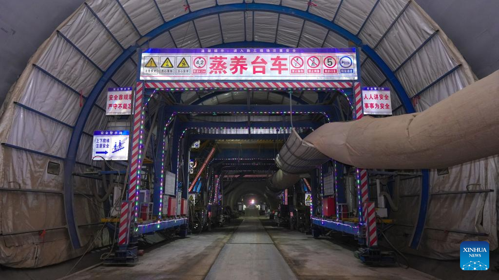 YAN'AN, 27 enero, 2026 (Xinhua) -- Imagen del 27 de enero de 2026 de una vista interior del túnel Jinjiagou a lo largo del ferrocarril de alta velocidad Yan'an-Yulin, en la provincia de Shaanxi, en el noroeste de China. El túnel Jinjiagou del tramo de Yan'an a lo largo del ferrocarril de alta velocidad Yan'an-Yulin fue perforado con éxito el martes. La línea ferroviaria, con una velocidad diseñada de 350 kilómetros por hora, ayudará a reducir el tiempo de viaje entre Xi'an y Yulin de 5 a 2 horas tras su apertura al tránsito. (Xinhua/Guo Peng)