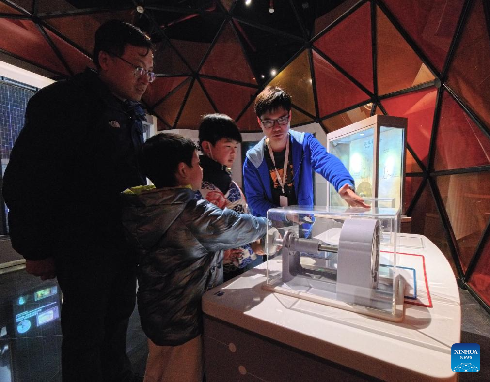 SHANGHAI, 27 enero, 2026 (Xinhua) -- Un empleado (d) guía a los visitantes para que prueben un juego de ciencia en el Museo de Ciencia y Tecnología de Shanghai, en Shanghai, en el este de China, el 27 de enero de 2026. El museo inició el martes su prueba de estrés operativa después de más de dos años de modernización sistemática, invitando a algunos visitantes y a los medios de comunicación a visitarlo. Comenzará su apertura de prueba al público durante el Festival de Primavera. (Xinhua/Fang Zhe)