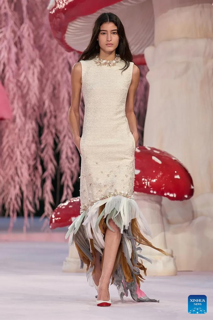 PARIS, 27 enero, 2026 (Xinhua) -- Una modelo presenta una creación de Matthieu Blazy para Chanel durante la Semana de la Alta Costura de París Primavera/Verano 2026, en París, Francia, el 27 de enero de 2026. (Xinhua/MeetEurope)