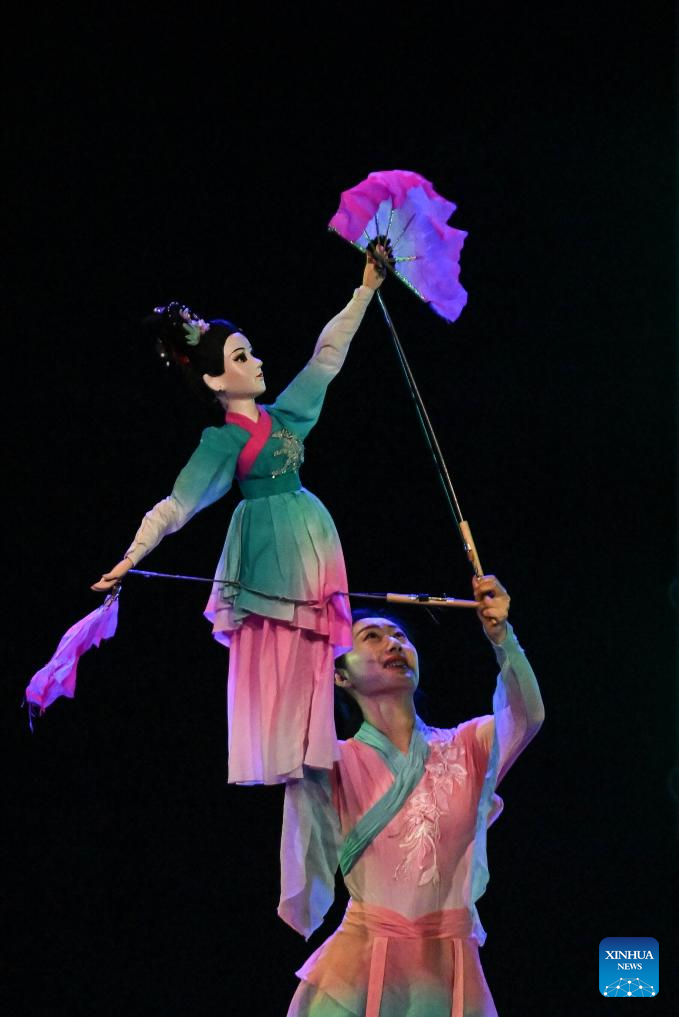 VIÑA DEL MAR, 28 enero, 2026 (Xinhua) -- Imagen del 27 de enero de 2026 de una artista realizando una presentación de la obra "El encanto de la marioneta oriental" de la Compañía de Marionetas de Rugao de China en el marco de la celebración de la llegada del Año Nuevo Chino, en el Teatro Municipal de Viña del Mar, en Viña del Mar, Chile. El balneario chileno de Viña del Mar celebró el martes la llegada del Año Nuevo Chino, con un espectáculo internacional de marionetas en pleno verano austral. (Xinhua/Jorge Villegas)