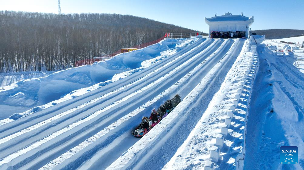 YAKESHI, 30 enero, 2026 (Xinhua) -- Vista aérea tomada con un dron el 21 de enero de 2026 de turistas disfrutando de los toboganes de nieve, en el área escénica de la Montaña Fénix, en Yakeshi de Hulun Buir, en la región autónoma de Mongolia Interior, en el norte de China. Yakeshi ha sido una base importante para las pruebas automotrices en zonas frías debido a su largo y gélido invierno. Un gran número de ingenieros y técnicos visitan la ciudad regularmente por negocios durante el invierno, pero también se convierten en un grupo estable de clientes para otros servicios disponibles aquí. Mientras tanto, las autoridades locales están mejorando aún más su infraestructura y servicios para atraer a más turistas que buscan las coloridas atracciones invernales que ofrece la ciudad. (Xinhua/Bei He)