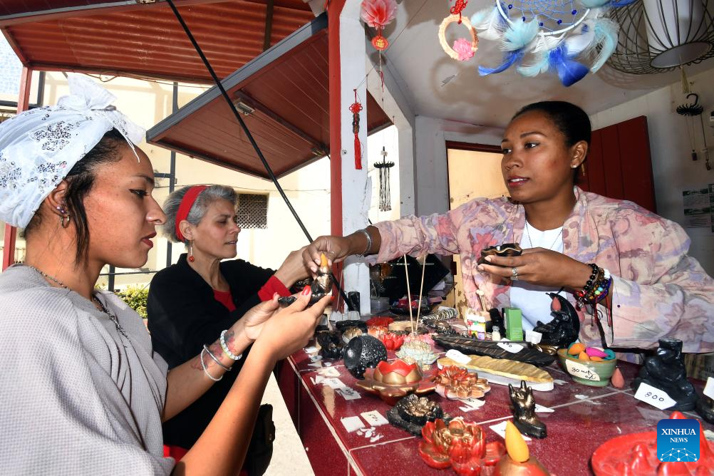 En la Plaza San Fan Cong de la comunidad china habanera, como es tradicional, la feria de artesanías comercializa velas, inciensos, aromas de flores y objetos relacionados con el Año Nuevo chino.