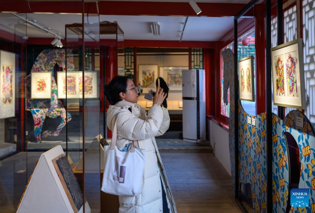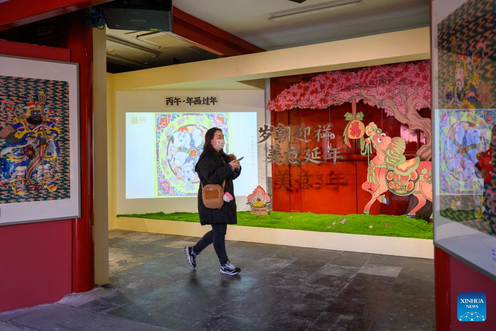BEIJING, 5 febrero, 2026 (Xinhua) -- Imagen del 4 de febrero de 2026 de una turista tomando fotografías de una exhibición durante una exposición de pinturas del Año Nuevo chino en el Museo del Palacio del Príncipe Kung, en Beijing, capital de China. Una exposición que muestra más de cien exquisitas pinturas del Año Nuevo chino recopiladas por el Museo del Palacio del Príncipe Kung se inauguró aquí el miércoles. (Xinhua/Jin Liangkuai)