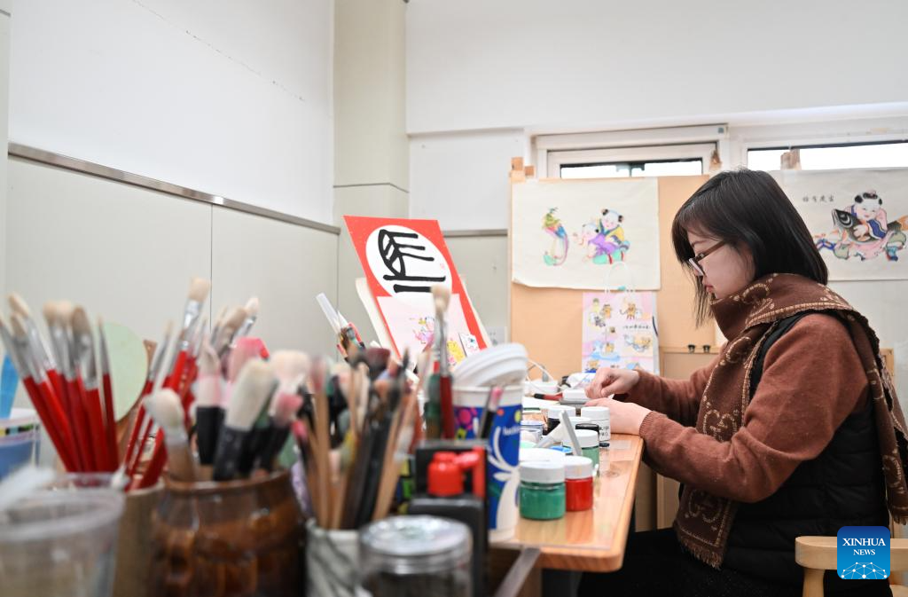 TIANJIN, 5 febrero, 2026 (Xinhua) -- Imagen del 4 de febrero de 2026 de un pintora mezclando colores para las pinturas de Año Nuevo en la Editorial de Bellas Artes de Yangliuqing de Tianjin, en Tianjin, en el norte de China. Para celebrar el próximo Año del Caballo, la Editorial de Bellas Artes de Yangliuqing de Tianjin lanzó una serie de pinturas de Año Nuevo con temática de caballos, integrando técnicas tradicionales de pintura de Año Nuevo con diseño moderno. (Xinhua/Sun Fanyue)