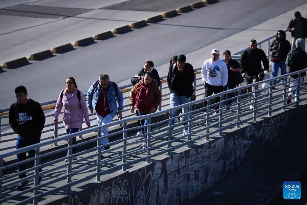 BOGOTA, 5 febrero, 2026 (Xinhua) -- Personas caminan por un puente peatonal durante el primer Día Sin Carro y Sin Moto del año, en Bogotá, capital de Colombia, el 5 de febrero de 2026. (Xinhua/Andrés Moreno)