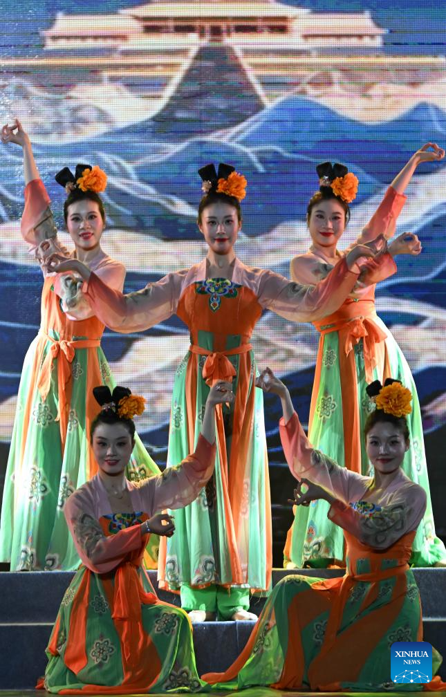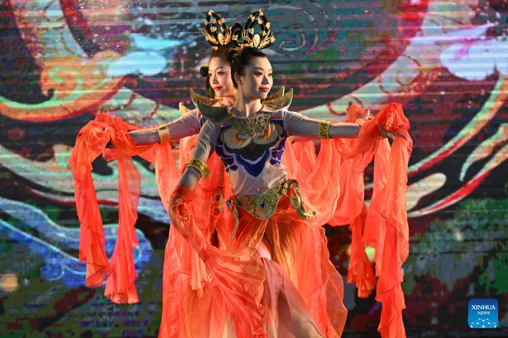 SANTIAGO, 6 febrero, 2026 (Xinhua) -- Imagen del 5 de febrero de 2026 de artistas realizando una presentación durante la inauguración de la feria de luces chinas, Tianfu Festival, en el Parque Padre Hurtado de la Reina, en Santiago, capital de Chile. Los pandas gigantes de la provincia china de Sichuan, el Buda de cuatro caras del monte Emei y el estilo de pintura tradicional verde y azul, Qinglü Shanshui, son algunos de los atractivos de gran tamaño que iluminan los atardeceres de Santiago de Chile, en el marco de la feria de luces chinas, Tianfu Festival, inaugurada ayer jueves en la previa del Año Nuevo chino. (Xinhua/Jorge Villegas)