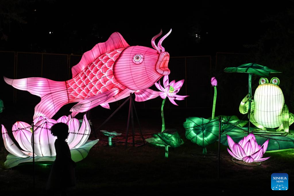 SANTIAGO, 6 febrero, 2026 (Xinhua) -- Imagen del 5 de febrero de 2026 de personas observando esculturas iluminadas durante la inauguración de la feria de luces chinas, Tianfu Festival, en el Parque Padre Hurtado de la Reina, en Santiago, capital de Chile. Los pandas gigantes de la provincia china de Sichuan, el Buda de cuatro caras del monte Emei y el estilo de pintura tradicional verde y azul, Qinglü Shanshui, son algunos de los atractivos de gran tamaño que iluminan los atardeceres de Santiago de Chile, en el marco de la feria de luces chinas, Tianfu Festival, inaugurada ayer jueves en la previa del Año Nuevo chino. (Xinhua/Jorge Villegas)