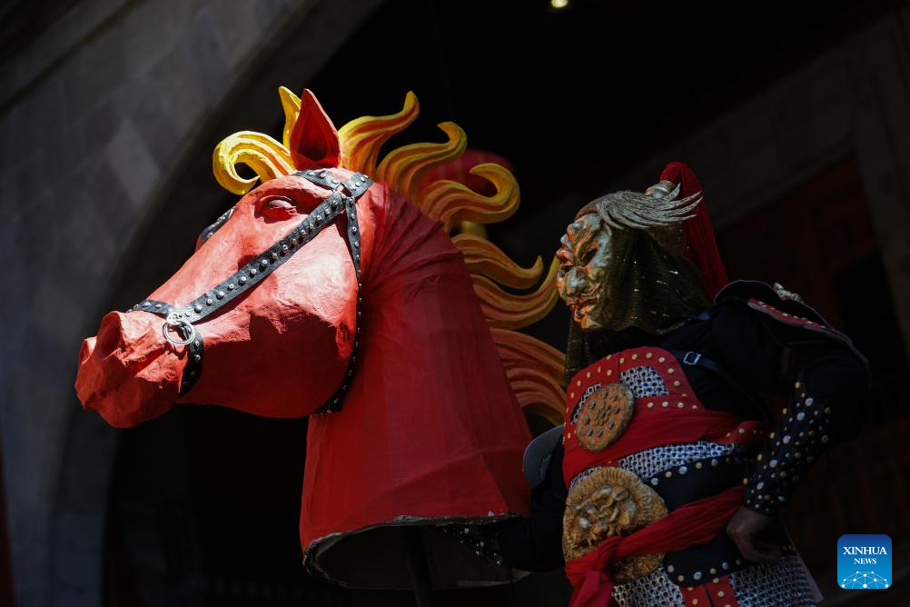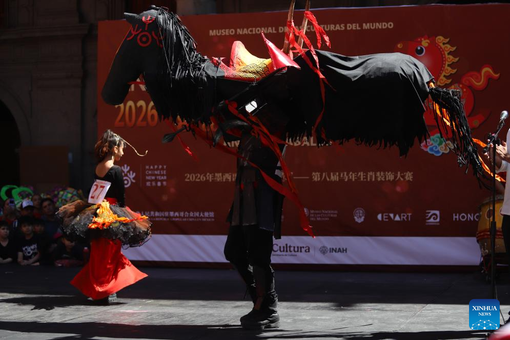Imagen del 7 de febrero de 2026 del ganador del primer lugar de la categoría individual, Jonathan Wilfrido Montero, presentando su disfraz durante el 8 Concurso de Disfraces "Año del Caballo", en el marco de la celebración del Año Nuevo chino, en la Ciudad de México, capital de México. Con un ambiente festivo, familiar y lleno de color, más de 15.000 personas se congregaron el sábado en el corazón de la Ciudad de México para participar en las celebraciones del Año Nuevo chino en el país latinoamericano, que incluyeron un vistoso desfile de leones y dragones, así como un concurrido concurso de disfraces inspirado en los animales del zodiaco. (Xinhua/Francisco Cañedo)