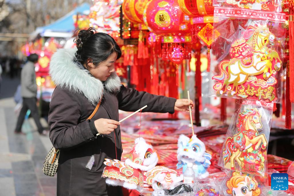 BEIJING, 8 febrero, 2026 (Xinhua) -- Imagen del 7 de febrero de 2026 de personas seleccionando decoraciones para la Fiesta de la Primavera, en la ciudad de Hebi, en la provincia de Henan, en el centro de China. A medida que se acerca la Fiesta de la Primavera, se celebran en todo el país diversas actividades que reflejan tradiciones ancestrales, llenando el ambiente de gran entusiasmo. (Xinhua/Zhao Yongqiang)
