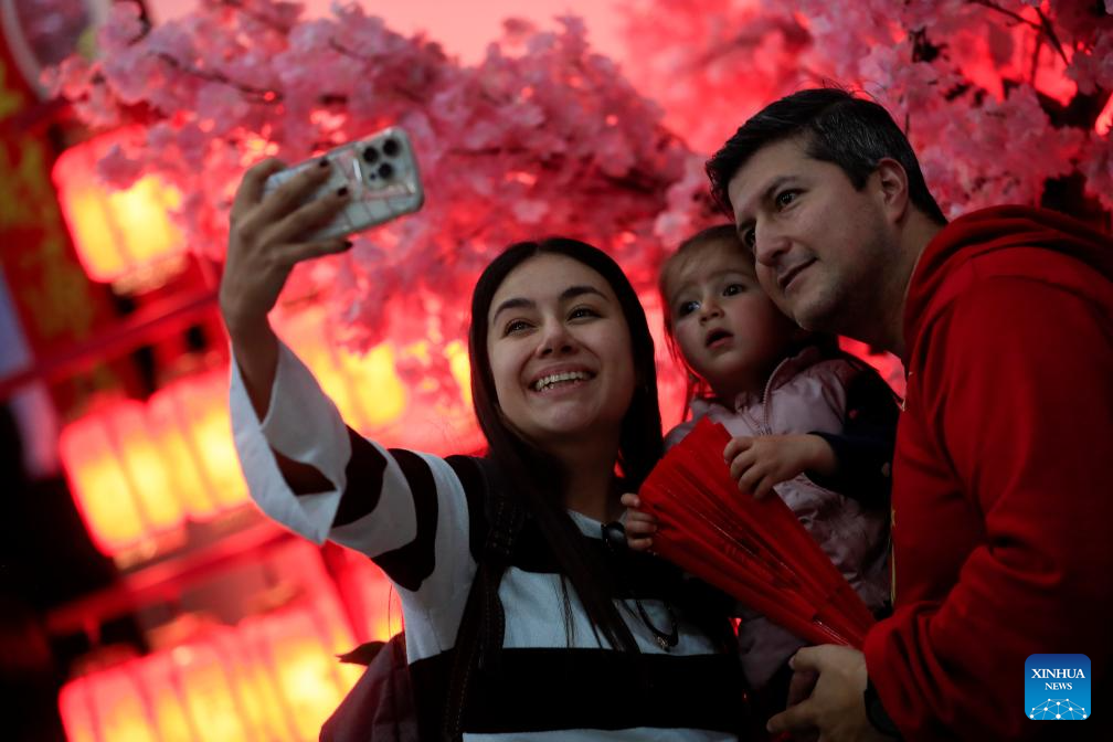 QUITO, 8 febrero, 2026 (Xinhua) -- Imagen del 7 de febrero de 2026 de personas tomándose una fotografía durante un Festival Cultural con motivo de la próxima celebración del Año Nuevo chino, en la ciudad de Quito, capital de Ecuador. La tradicional danza china de leones y dragones dio la bienvenida a un Festival Cultural en la ciudad ecuatoriana de Quito, organizado por la Academia de Lengua China Siyuan, con motivo de la próxima celebración del Año Nuevo chino o Fiesta de la Primavera, la festividad tradicional más importante del país asiático. (Xinhua/Ricardo Landeta)