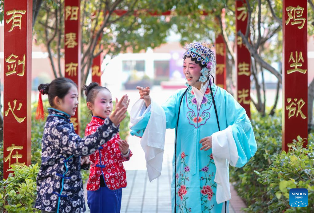 BEIJING, 8 febrero, 2026 (Xinhua) -- Niños aprenden a interpretar ópera tradicional china bajo la guía de una instructora, en Taizhou, en la provincia de Jiangsu, en el este de China, el 8 de febrero de 2026. Varias actividades extracurriculares están disponibles para los estudiantes a lo largo de China durante las vacaciones de invierno. (Xinhua/Zhou Shegen)