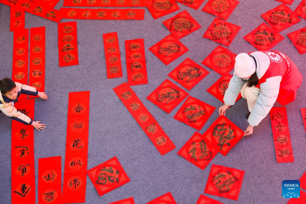 BEIJING, 8 febrero, 2026 (Xinhua) -- Estudiantes escriben coplas de primavera en una escuela primaria, en Dongyang, en la provincia de Zhejiang, en el este de China, el 8 de febrero de 2026. Varias actividades extracurriculares están disponibles para los estudiantes a lo largo de China durante las vacaciones de invierno. (Xinhua/Bao Kangxuan)