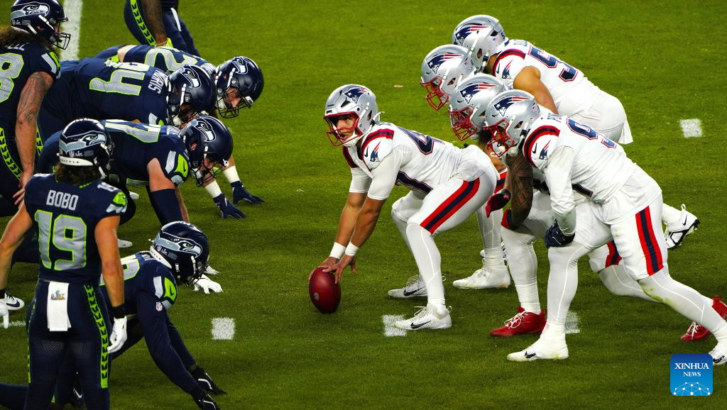 SANTA CLARA, 9 febrero, 2026 (Xinhua) -- Imagen del 8 de febrero de 2026 de jugadores de ambos equipos preparándose durante el Super Bowl LX de la NFL, entre Seattle Seahawks y New England Patriots, en Santa Clara, Estados Unidos. (Xinhua/Wu Xiaoling)