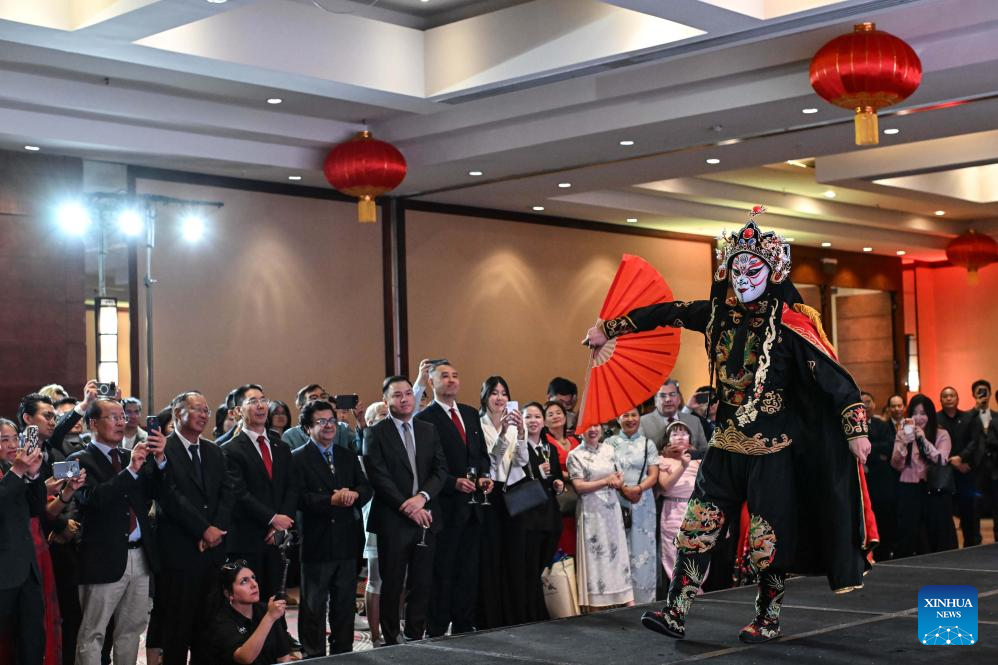 SANTIAGO, 11 febrero, 2026 (Xinhua) -- Imagen del 10 de febrero de 2026 de una artista realizando una presentación durante una recepción organizada por la embajada china en Chile con motivo de la llegada del Año Nuevo chino, en Santiago, capital de Chile. Autoridades y representantes de empresas, gremios e instituciones educativas de Chile y China celebraron el martes la inminente llegada del Año Nuevo chino, en una recepción organizada por la embajada china en el país austral, para dar la bienvenida al Año del Caballo del horóscopo tradicional chino. (Xinhua/Jorge Villegas)