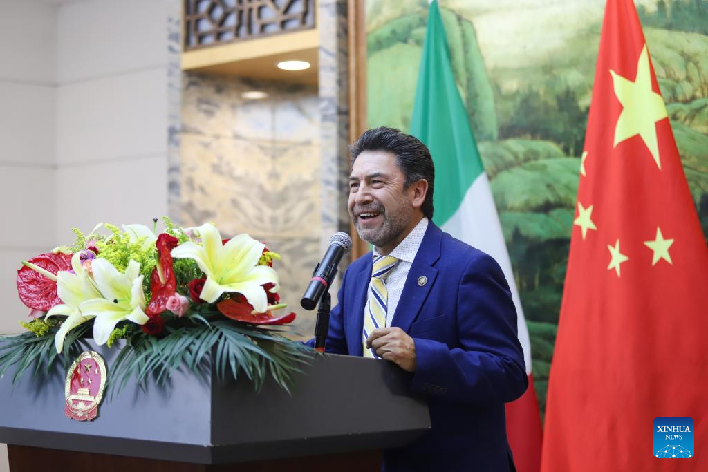 Imagen del 11 de febrero de 2026 del presidente del Grupo de Amistad México-China de la Cámara de Diputados, Raymundo Vázquez, hablando durante la recepción con motivo de la próxima llegada del Año Nuevo chino, en la Ciudad de México, capital de México. La Embajada de China en México ofreció el miércoles una recepción oficial con motivo de la próxima llegada del Año Nuevo chino, la festividad más significativa de la cultura del país asiático, en un acto que combinó tradición cultural y mensajes de fortalecimiento de los lazos bilaterales. (Xinhua/Daniel Augusto)
