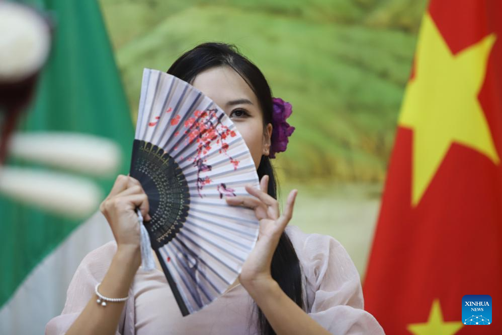 Imagen del 11 de febrero de 2026 de una mujer realizando una presentación artística durante la recepción con motivo de la próxima llegada del Año Nuevo chino, en la Ciudad de México, capital de México. La Embajada de China en México ofreció el miércoles una recepción oficial con motivo de la próxima llegada del Año Nuevo chino, la festividad más significativa de la cultura del país asiático, en un acto que combinó tradición cultural y mensajes de fortalecimiento de los lazos bilaterales. (Xinhua/Daniel Augusto)