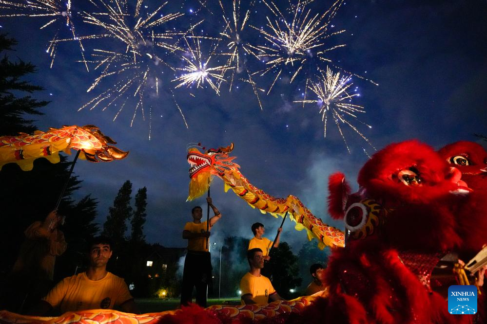 La recepción incluyó espectáculos artísticos tradicionales, entre ellos la danza del león y el dragón, interpretaciones musicales y fuegos artificiales.