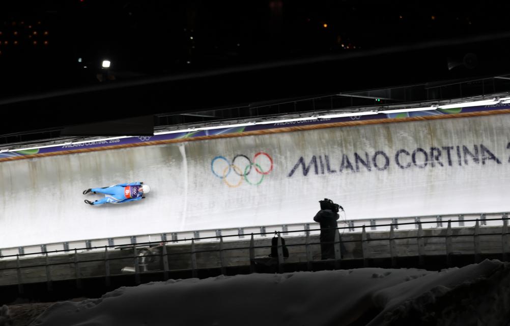 CORTINA D'AMPEZZO, 12 febrero, 2026 (Xinhua) -- Verena Hofer, de Italia, compite durante los relevos por equipos de luge en los Juegos Olímpicos de Invierno Milán-Cortina 2026, en Cortina, Italia, el 12 de febrero de 2026. (Xinhua/Ding Xu)