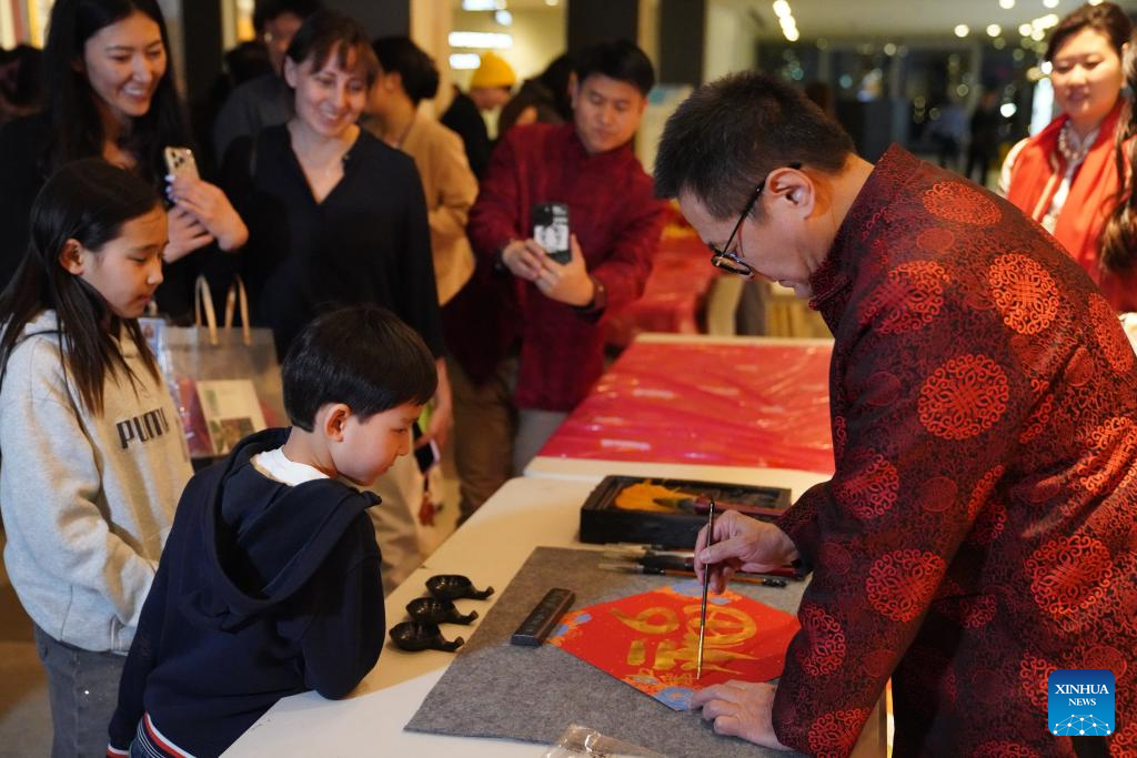 NUEVA YORK, 13 febrero, 2026 (Xinhua) -- Imagen del 12 de febrero de 2026 de personas observando una exposición de caligrafía china en una gala de Año Nuevo chino, en la sede de la ONU, en Nueva York. (Xinhua/Zhang Fengguo)