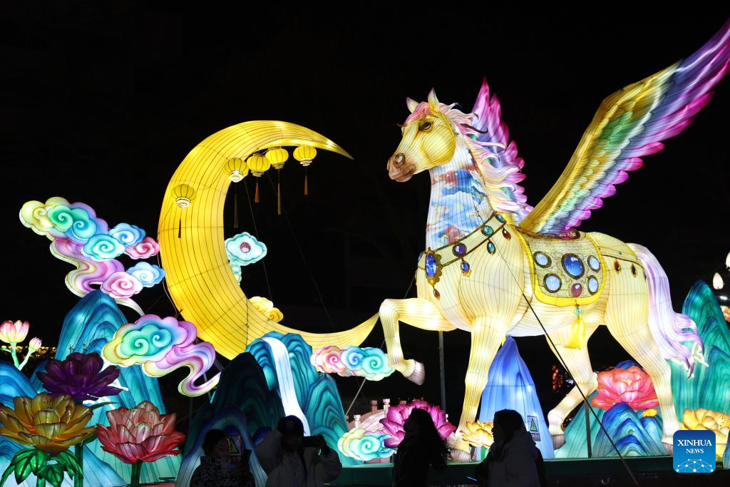 LANZHOU, 15 febrero, 2026 (Xinhua) -- Imagen del 14 de febrero de 2026 de turistas visitando una feria de linternas para celebrar el próximo Año Nuevo chino, en Lanzhou, en la provincia de Gansu, en el noroeste de China. (Xinhua/Chen Bin)