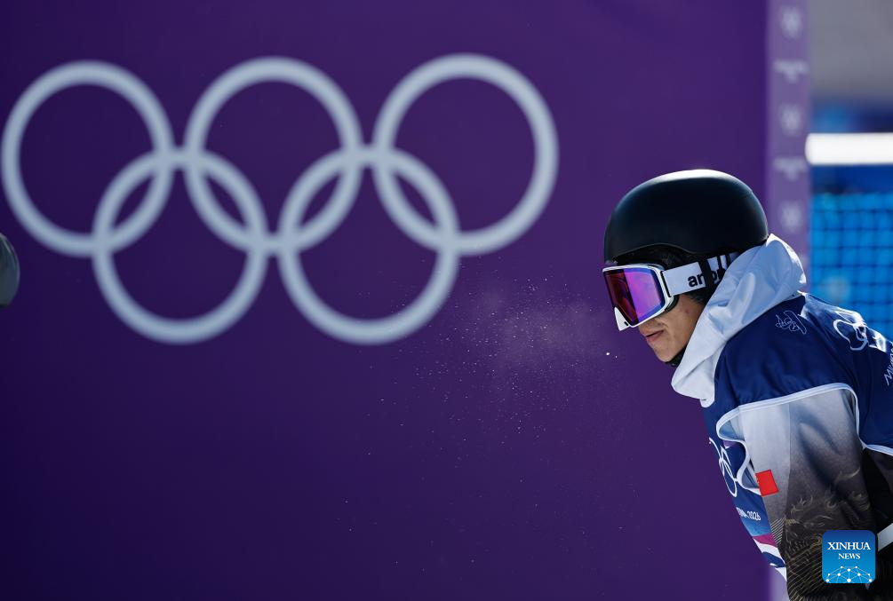 LIVIGNO, 15 febrero, 2026 (Xinhua) -- Yang Wenlong, de China, reacciona después de competir en la clasificación del slopestyle masculino de snowboard en los Juegos Olímpicos de Invierno Milán-Cortina 2026, en Livigno, Italia, el 15 de febrero de 2026. (Xinhua/Wang Peng)