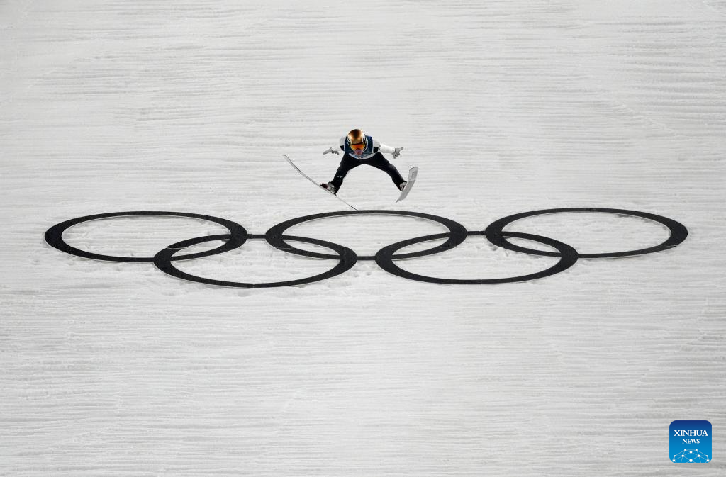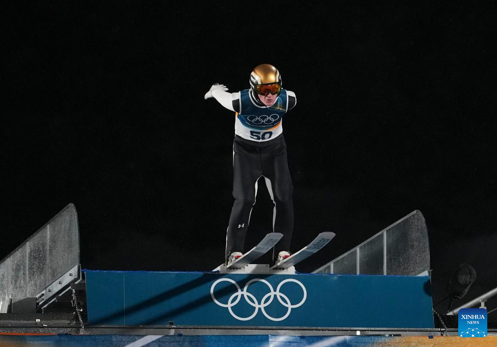 PREDAZZO, 15 febrero, 2026 (Xinhua) -- Imagen del 14 de febrero de 2026 de Domen Prevc, de Eslovenia, compitiendo durante la ronda 1 en trampolín largo individual masculino de salto de esquí en los Juegos Olímpicos de Invierno Milán-Cortina 2026, en Predazzo, Italia. (Xinhua/Meng Yongmin)