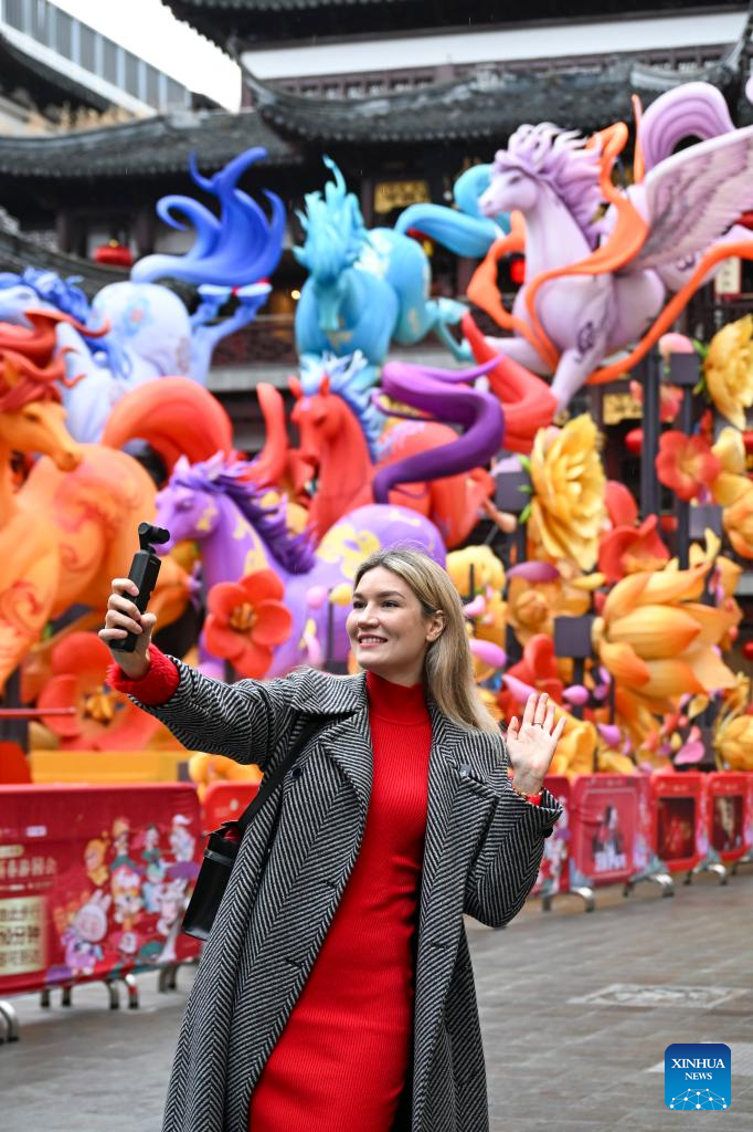 SHANGHAI, 16 febrero, 2026 (Xinhua) -- Imagen del 6 de febrero de 2026 de Aleksandra Antonenko grabando videos cortos en el centro comercial Jardín Yuyuan, en Shanghai, en el este de China. Aleksandra Antonenko se mudó de Rusia para realizar su doctorado en la Universidad Jiao Tong de Shanghai en 2022. También comenzó a mostrar el encanto de la vida cotidiana en China al mundo con videos cortos. (Xinhua/Chen Haoming)