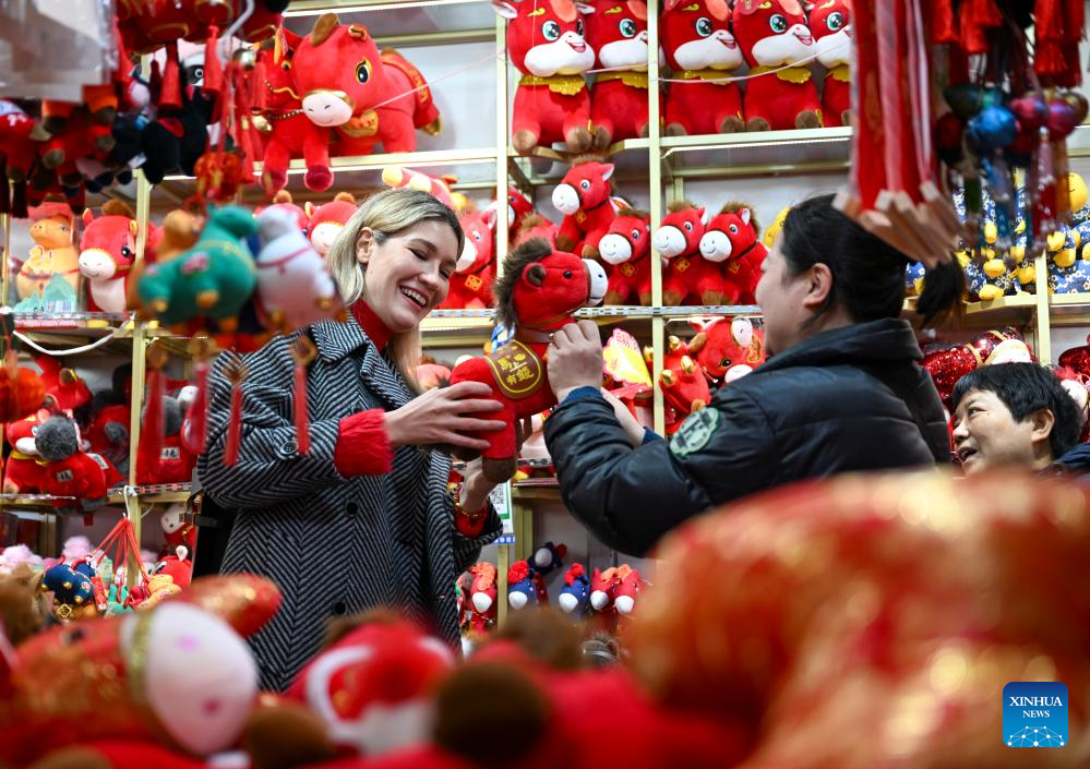 SHANGHAI, 16 febrero, 2026 (Xinhua) -- Imagen del 6 de febrero de 2026 de Aleksandra Antonenko seleccionando decoraciones de Año Nuevo en una tienda, en Shanghai, en el este de China. Aleksandra Antonenko se mudó de Rusia para realizar su doctorado en la Universidad Jiao Tong de Shanghai en 2022. También comenzó a mostrar el encanto de la vida cotidiana en China al mundo con videos cortos. (Xinhua/Chen Haoming)