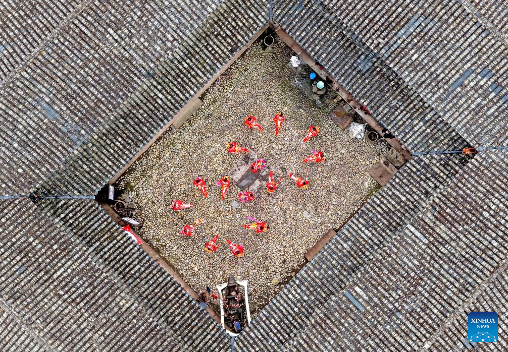 BEIJING, 17 febrero, 2026 (Xinhua) -- Vista aérea tomada con un dron el 17 de febrero de 2026 de artistas interpretando danzas folclóricas, en el distrito de Xianju, en Taizhou, en la provincia de Zhejiang, en el este de China. La Fiesta de la Primavera de este año registró un aumento de visitantes deseosos de experimentar la gastronomía local, la rica historia y vibrantes presentaciones folclóricas. (Xinhua/Wang Huabin)