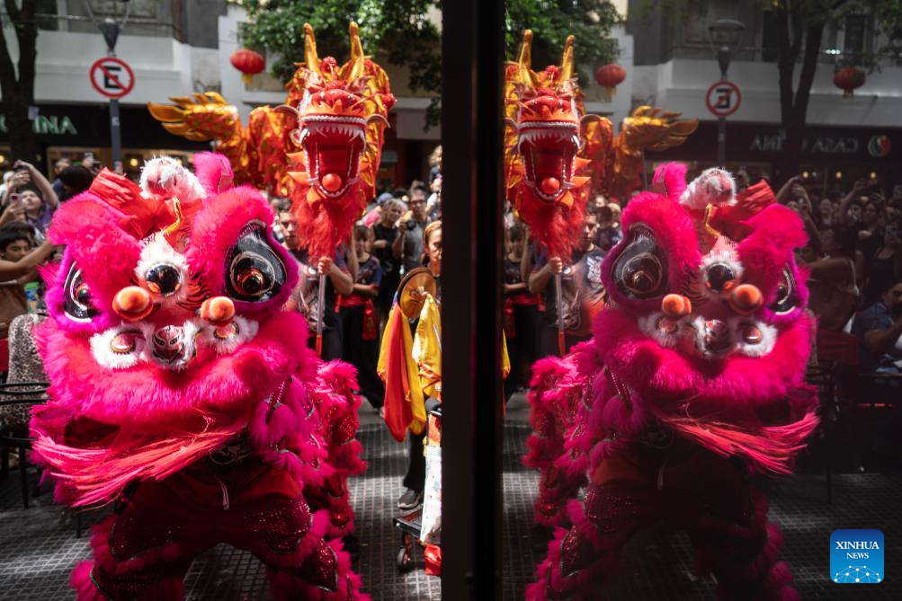 BUENOS AIRES, 17 febrero, 2026 (Xinhua) -- Imagen del 16 de febrero de 2026 de artistas marciales de la escuela Lung Chuan realizando una presentación de la danza del león durante las celebraciones por el Año Nuevo chino, en el Barrio Chino, en la ciudad de Buenos Aires, capital de Argentina. El Barrio Chino de Buenos Aires celebró el lunes la llegada del Año Nuevo chino o Fiesta de la Primavera con un multitudinario evento lleno de color y emoción que ofreció arte, cultura, música, moda, baile y gastronomía de China. (Xinhua/Martín Zabala)
