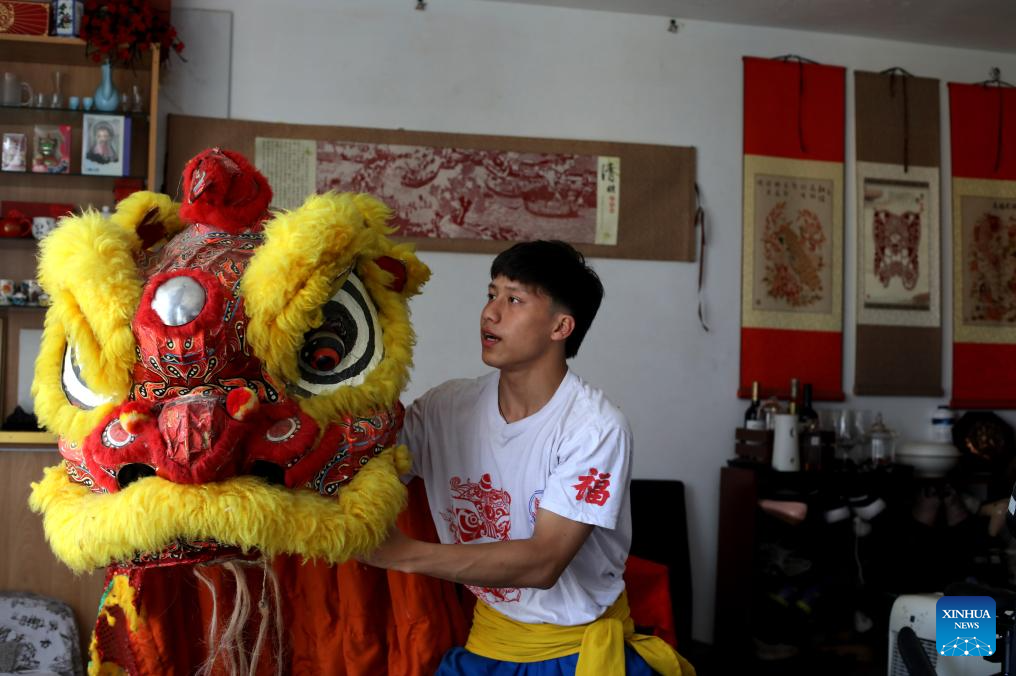 LIMA, 17 febrero, 2026 (Xinhua) -- Imagen del 9 de febrero de 2026 de Gonzalo Zhou, un joven peruano de 17 años de edad, hijo de padre chino y madre peruana con raíces chinas, preparándose para ensayar la danza del león en su casa, en Lima, Perú. La Fiesta de la Primavera es, para muchas personas en Perú, una celebración que se expresa a través del movimiento, el sonido de los tambores y la reunión colectiva, donde la danza del dragón, el león y la cena que reúne a las familias se convierten en un lenguaje que transmite buenos deseos, memoria y renovación. (Xinhua/Mariana Bazo)