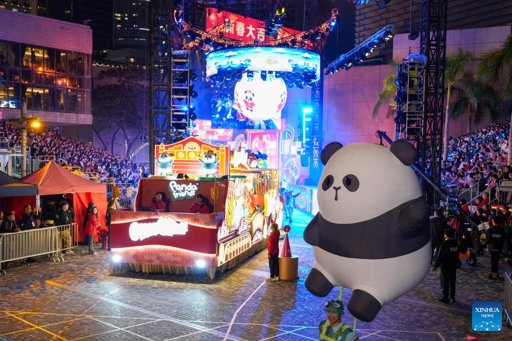 HONG KONG, 18 febrero, 2026 (Xinhua) -- Imagen del 17 de febrero de 2026 de artistas asistiendo a un desfile internacional nocturno para festejar el Año del Caballo, en Hong Kong, en el sur de China. Un desfile internacional nocturno para festejar el Año del Caballo se celebró en Hong Kong el martes por la noche, dando inicio a una serie de programas festivos destacados por el Año Nuevo chino. (Xinhua/Zhu Wei)