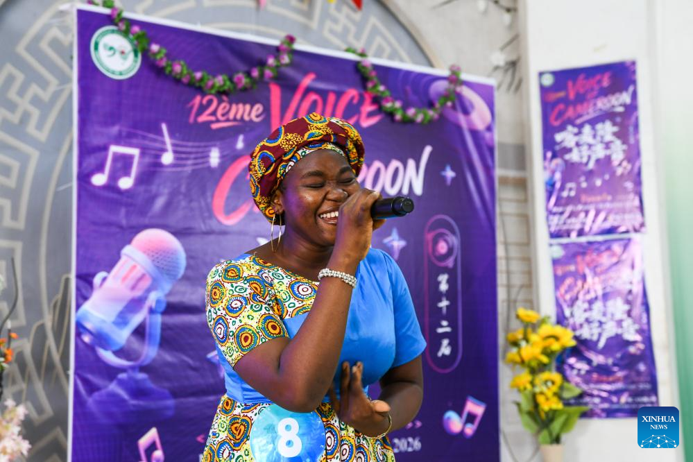 SOA, 20 febrero, 2026 (Xinhua) -- Una participante canta una canción china en la final de la 12 edición del concurso de canciones chinas "La Voz de Camerún" en la Universidad de Yaundé II, en Soa, Camerún, el 20 de febrero de 2026. (Xinhua/Kepseu)