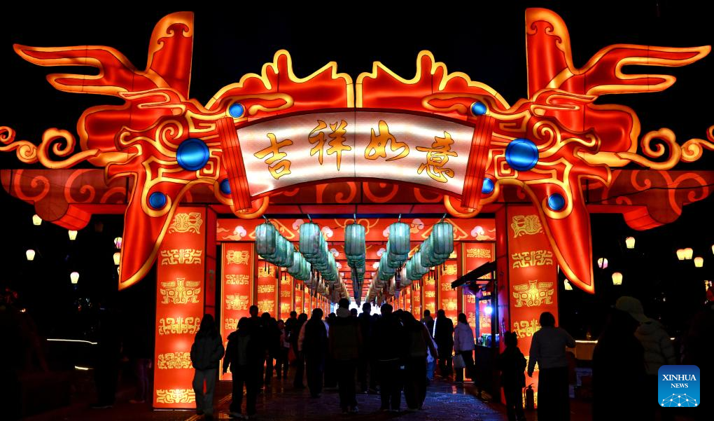 BEIJING, 20 febrero, 2026 (Xinhua) -- Imagen del 19 de febrero de 2026 de turistas visitando una exposición de linternas en una feria del templo, en la ciudad de Shangqiu, en la provincia de Henan, en el centro de China. El Ministerio de Cultura y Turismo de China lanzó una campaña cultural y turística de un mes de duración previo a la Fiesta de la Primavera, que incluye una amplia gama de actividades y medidas promocionales para satisfacer mejor las necesidades de la población. (Xinhua/Zhu Xiang)