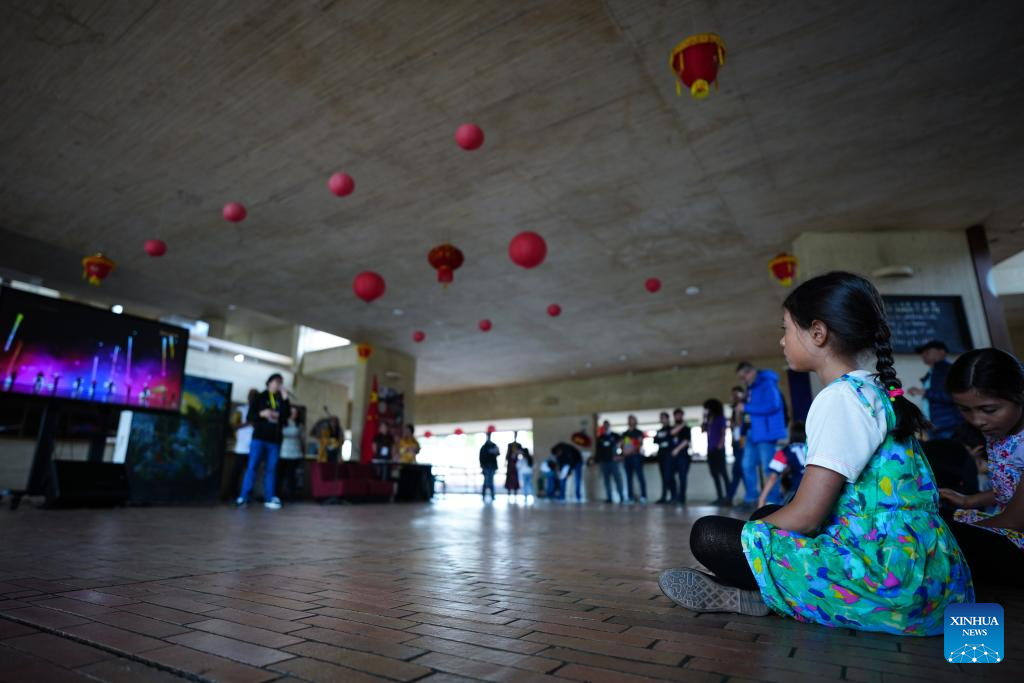 BOGOTÁ, 21 feb (Xinhua) -- Con la retransmisión de la cuenta regresiva para la llegada del Año Nuevo chino culminó hoy sábado la semana de actividades culturales para esta celebración en la biblioteca pública Virgilio Barco de la ciudad de Bogotá, Colombia.